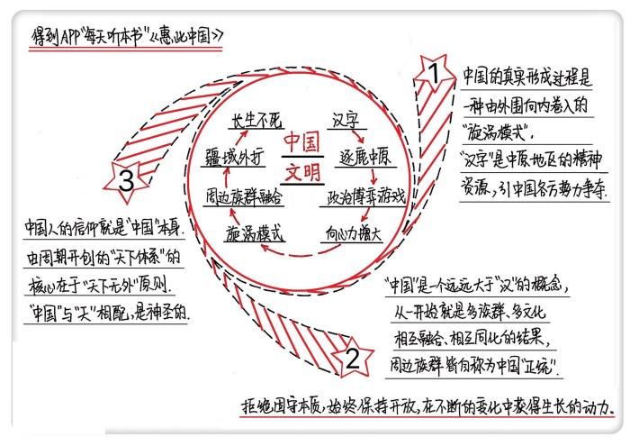 这本书里,把这种模式称为“旋涡模式”。所谓旋涡,是指早期中国形成了一个具有巨大诱惑力的政治博弈游戏,各方势力为了争夺生存的最大利益,都选择主动加入这个游戏。更重要的是,各方势力一旦卷入这个游戏,就被吸进来,跑不出去,最终变成这个“文明旋涡”的一部分。随着卷入的族群越来越多,旋涡的规模就越来越大,向心力也越来越强。这个不断强化的博弈游戏,让中国文明始终处于一个不断生长的状态,这就是它长生不死的终极秘密。