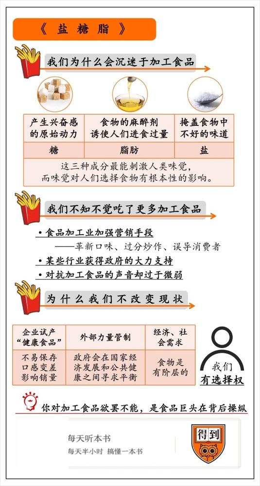 这本书就从行业的角度揭示了,为了吸引更多的消费者,食品公司在产品中加入了远超出健康标准的糖分、盐分和脂肪。而且根据相关研究,习惯了吃加工食品的人想戒掉零食,就跟戒毒的难度差不多。