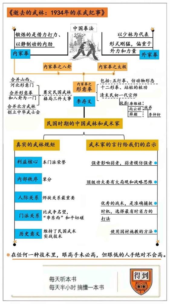 这本《逝去的武林:1934年的求武纪事》就为你介绍到这,我们再回顾一下本期音频的要点。这本书讲述的,是民国时期以形意拳为代表的北方武林和民间武术。