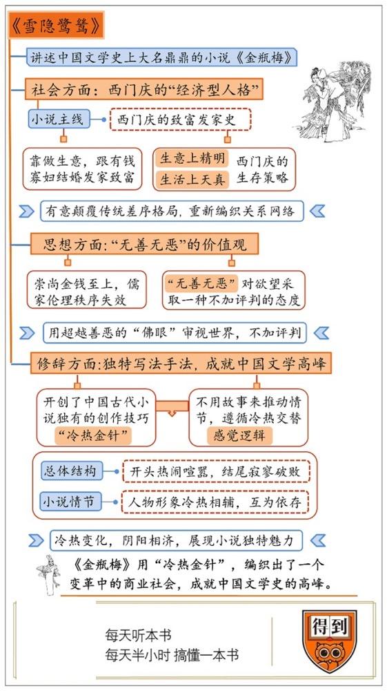 格非老师在《雪隐鹭鸶》这本书里讲了他自己对《金瓶梅》的理解,分了社会、思想和修辞三个部分。我们今天也是从这三个角度讲了这本书,我来带你回顾一下。